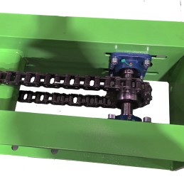 - Die vertikale Bewegung wird durch ein schweres Kettensystem geführt